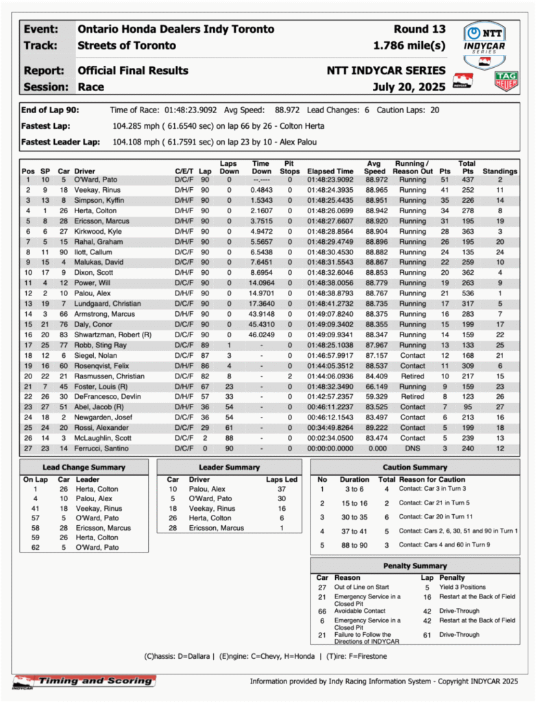 Toronto Indy Results